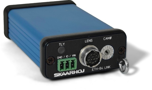 ETH-B4 Link omogoča omrežno povezavo za analogne B4-oddajne objektive s konektorjem Hirose-12 in omogoča nadzor objektiva prek omrežja Ethernet. Z uporabo jedra naprave SKAARHOJ lahko operaterji natančno upravljajo zaslonko objektivov B4 in dostopajo do namenskih kanalov za signalizacijo. Ta naprava se odlikuje po izjemno lahki in kompaktni obliki ter ponuja edinstveno rešitev, pri kateri se podatki za nadzor zaslonke prenašajo ločeno od signalov za nadzor kamere. Značilnosti vključujejo stikalo za izbiro kamere za konfiguracijo ID in IP, analogni izhod prek konektorja Hirose-12 in dvobarvno signalno lučko, skupaj z relejskim izhodom za programske signalne signale, kar zagotavlja celovito izkušnjo nadzora.