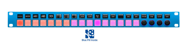 SKAARHOJ Rack Pro 3 z vgrajenim Blue Pill je kompaktna nadzorna plošča za vgradnjo v stojalo velikosti 1RU, opremljena z vrhunskimi gumbi NKK in osvetljenimi OLED-kodirniki, zasnovana za dinamična okolja oddajanja in produkcije z več napravami.
