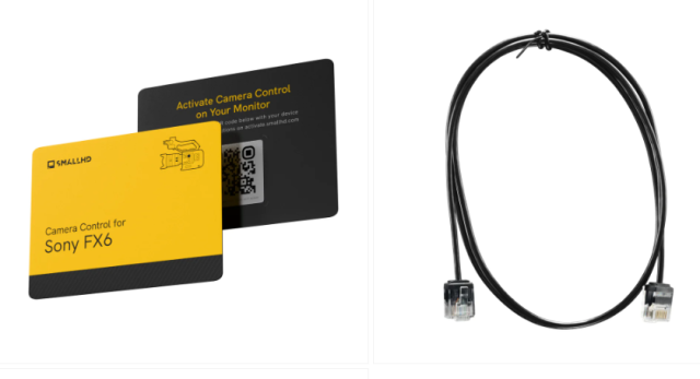 Komplet vključuje kartico za prenos programske licence ter potrebne kable za nastavitev. Ko je licenca za nadzor kamere aktivirana na monitorju SmallHD, je trajno vezana na to napravo in je ni mogoče prenesti.