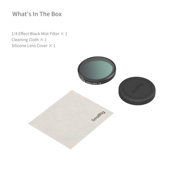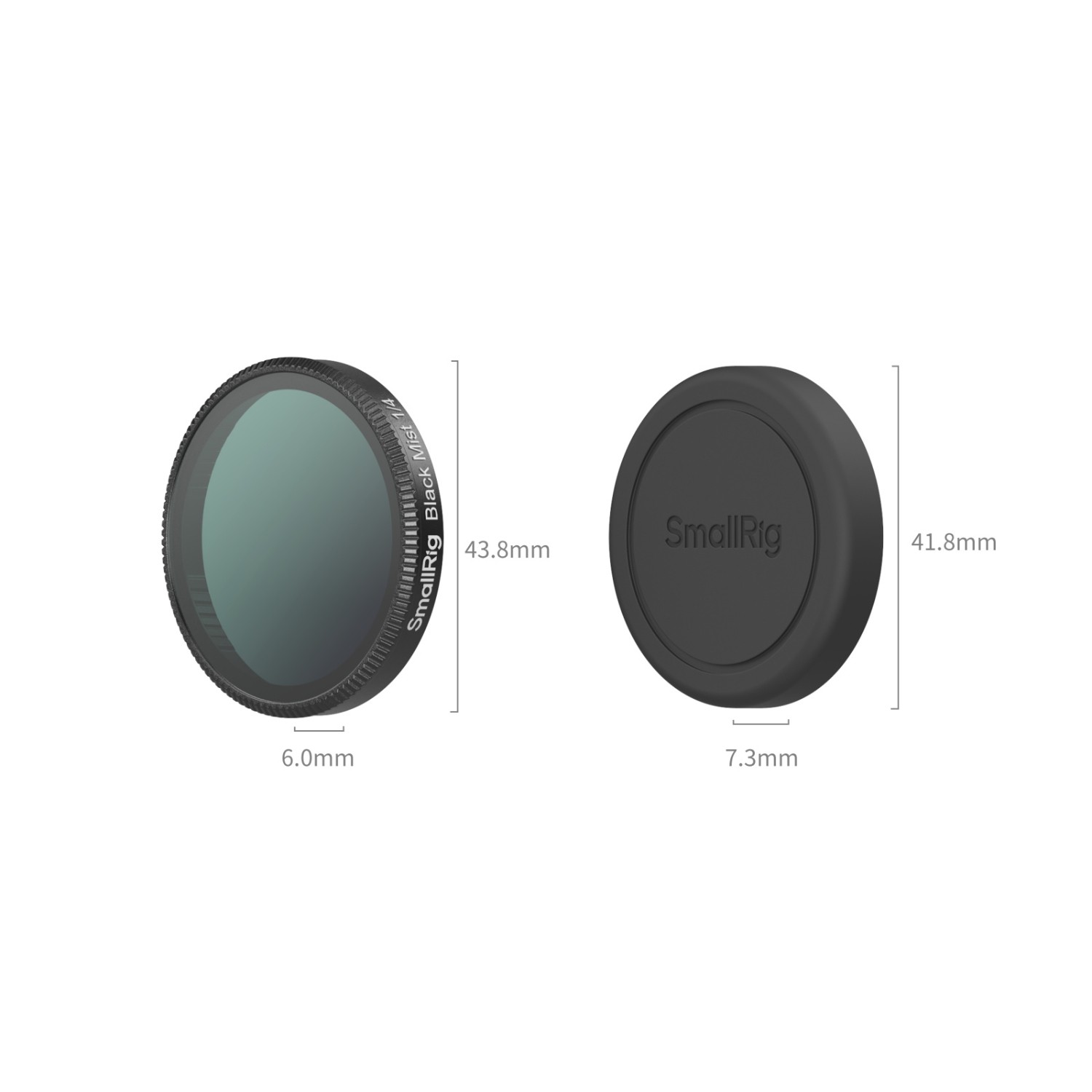 Črni filter 1/4 zmanjša svetlobo za sanjski, kinematografski učinek. Hitra zaskočna zasnova omogoča neposredno pritrditev brez potrebe po odstranjevanju objektiva, kar znatno izboljša učinkovitost snemanja. Za dodatno udobje in zaščito je priložen mehak silikonski pokrovček za objektiv, ki ščiti objektiv kamere pred praskami in prahom, ko ga ne uporabljate.