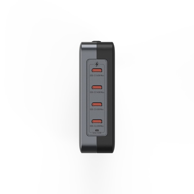 1. Visoka izhodna moč: Polnilec s skupno močjo 145 W podpira največ 140 W izhodne moči na posamezna vrata z uporabo standarda PD3.1, kar zagotavlja močno podporo napravam z veliko močjo.