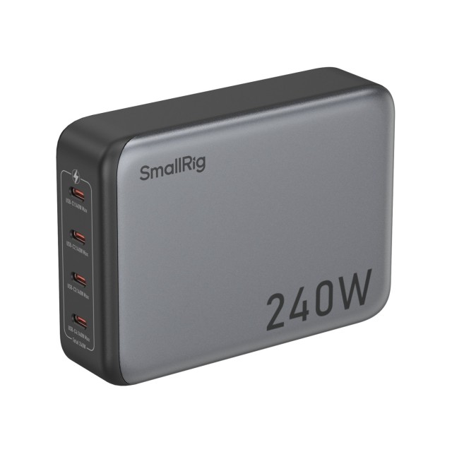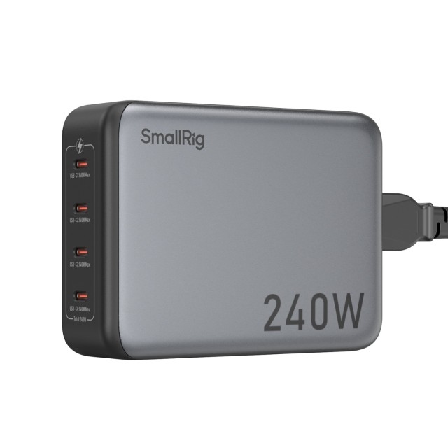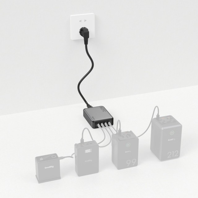 SmallRig 240W 4-portni napajalnik PD (standard EU) 4752 je zelo učinkovita in vsestranska naprava za polnjenje s skupno izhodno močjo 240 W. Ta polnilnik s štirimi vrati USB-C podpira hkratno polnjenje več naprav, kot so baterije V, baterije NP-F, akumulatorske baterije fotoaparatov, pametni telefoni, računalniki, fotoaparati in drugo, zato je primeren za različne scenarije uporabe. Vsa vrata podpirajo hitro polnjenje, pri čemer vsako od vrat podpira izhodno moč do 140 W (največ) prek standarda PD3.1, kar zagotavlja močno podporo napravam z veliko močjo in znatno povečuje učinkovitost polnjenja. Vsak izhodni priključek je opremljen z zaščito pred kratkim stikom in nadtokom, kar zagotavlja varno uporabo. Poleg tega je polnilec zaradi svoje kompaktne velikosti priročen za potovanja in vsakodnevno uporabo.