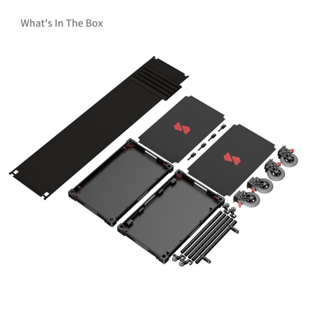 Voziček je izdelan iz aluminija letalske in industrijske kakovosti, zato ga lahko en član ekipe sestavi ali razstavi v samo 5 minutah. Zložljiva zasnova se za lažji prevoz zloži na le 17,2 cm višine, zato je enako primerna za mestne studie ali oddaljena snemanja.