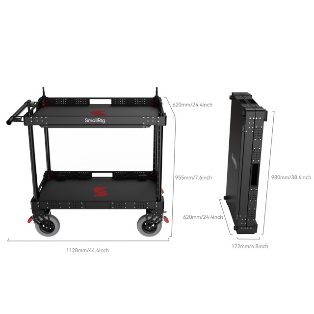 SmallRig 36-palčni lahki voziček za video produkcijske kamere MD4573 je profesionalna mobilna delovna postaja, zasnovana za filmske ustvarjalce in ustvarjalce vsebin, ki zahtevajo učinkovitost, vzdržljivost in vsestranskost na snemanju, kar omogoča pogosto premikanje in hitro uporabo med snemanjem. Voziček je izdelan iz aluminija letalske in industrijske kakovosti, zato ga lahko en član ekipe sestavi ali razstavi v samo 5 minutah. Zložljiva zasnova se za lažji prevoz zloži na le 17,2 cm višine, zato je enako primerna za mestne studie ali oddaljena snemanja.