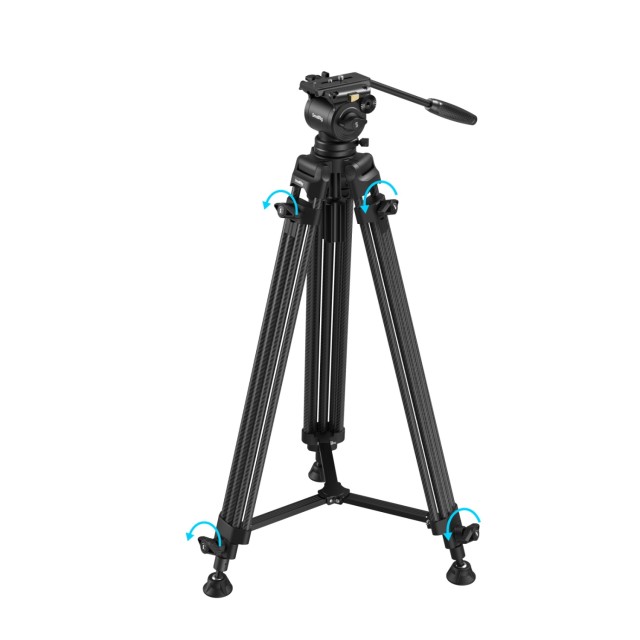 Stativ je izdelan iz ogljikovih vlaken, ima 2-2-1 segmentirano konstrukcijo nog in vgrajene vrtljive noge proti odklopu, kar zagotavlja optimalno stabilnost na neravnem ali kamnitem terenu. Kljub trdni konstrukciji celoten sistem tehta le 2,7 kg (6 lb), kar omogoča izjemno enostavno prevažanje v hitrih snemalnih okoljih.