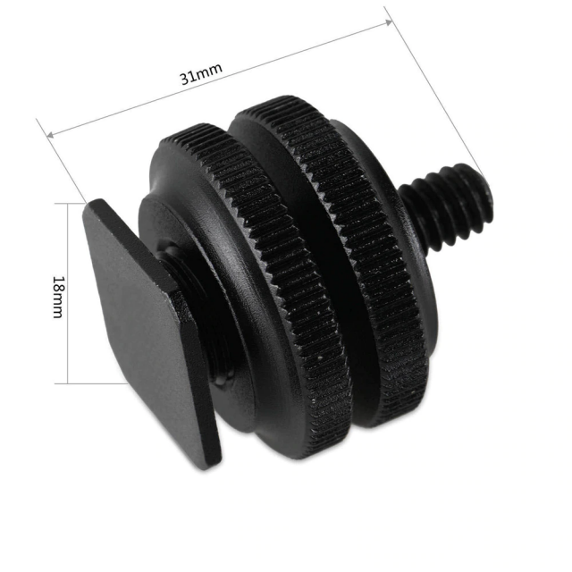 Adapter za vroči čevelj iz 3/8" v 1/4" je priložen držalu CoolArm11 in se lahko uporablja za pritrditev dodatne opreme s priključki 1/4" na vroči čevelj fotoaparata. Navoj je od 3/8" do 1/4". Zgornji del navoja je 1/4", spodnji pa 3/8".