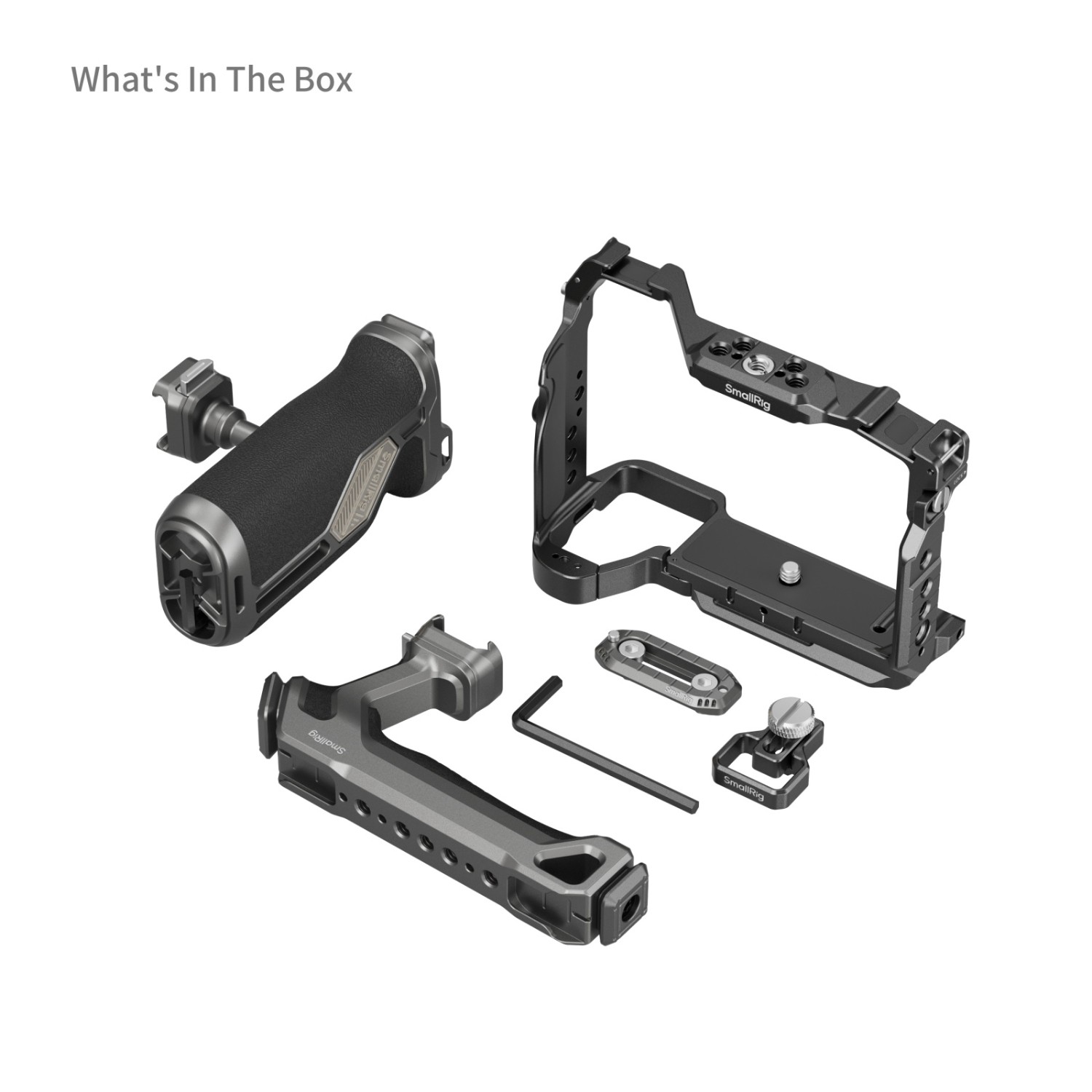 Ta komplet vključuje kletko, sponko za HDMI kabel, zgornji in stranski ročaji ter NATO tirnico.