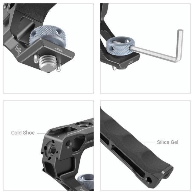 Držalo za pozicioniranje SmallRig ARRI 3765 je zasnovano tako, da olajša snemanje pod nizkim kotom in zmanjša obremenitev rok. Ergonomski ročaj s protizdrsnim in protizmrzovalnim silikonom je udoben in zaradi votle konstrukcije tehta le 124 g. Ima 3 sprednje in 2 zadnja hladna čevlja, ki omogočata hkratno namestitev mikrofona, luči LED, monitorja in druge dodatne opreme. Odprtine za pozicioniranje ARRI 3/8"-16 podpirajo nosilec za monitor 2903, 2348 za montažo monitorjev; luknje z navojem 1/4"-20 podpirajo magično roko 2070 za monitorje in daljinski upravljalnik 2924 za snemanje. Allenov ključ pomaga zategniti zaporni vijak, kar olajša namestitev in odstranitev.