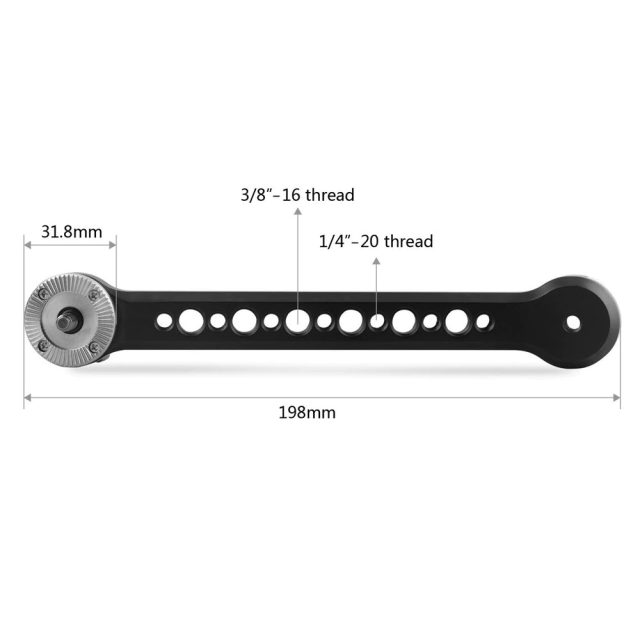 Podaljšek SmallRig Arri 1807 zagotavlja 198 mm podaljška za standardne Arrijeve rozetne ročke in druge naprave z Arrijevim nastavkom, kot so RED, URSA Mini, Sony FS7 in druge. Na enem koncu ima moški navoj M6, na drugem pa ženski navoj M6. Sama roka ima več lukenj z navojem 3/8"-16 in 1/4"-20 za pritrditev dodatne opreme.