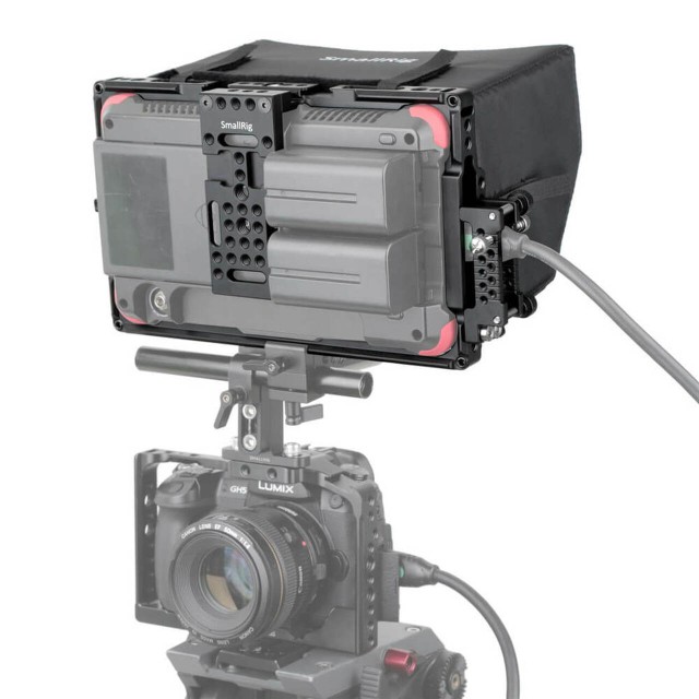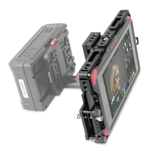 Kletka za monitor SMALLRIG Atomos Shogun in Ninja Assassin 1788 je oblikovno prilegajoča se zaščitna kletka, ki omogoča dostop do priključkov baterije in nosilcev. Zagotavlja dobro zaščito kabla HDMI. In napravo proti izklopu, ki preprečuje, da bi se kartica SSD izstrelila. Zaradi pritrditve na ramenski trak vam bo med fotografiranjem udobneje. Na obeh koncih zgornjega dela ima tirnico v slogu NATO, ki omogoča pritrditev sponke SMALLRIG rail 1254 s 15-milimetrsko palico. Medtem lahko pritrdite tudi hladno vtičnico SMALLRIG 1241 za pritrditev druge dodatne opreme. Na spodnji strani je tirnica v slogu NATO, ki vam omogoča hitro pritrditev sestavnih delov v slogu NATO. Ta naprava je opremljena z nizom lukenj za pritrditev dodatkov 1/4"-20 in 3/8"-16 za razširjene funkcije.
