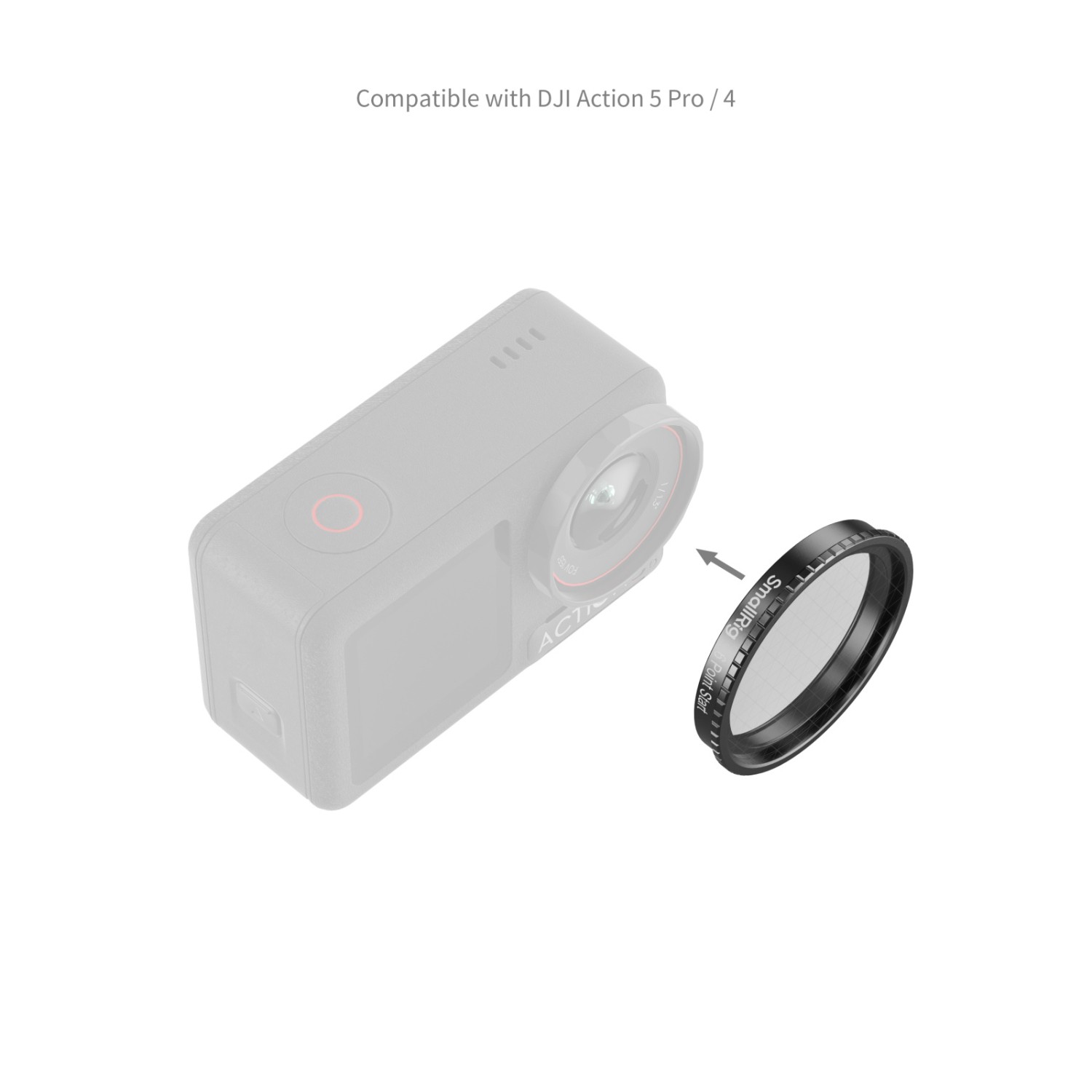 SmallRig pritrdljiv filter Star Cross (6 točk) za DJI Osmo Action 5 Pro / 4 5839 je posebej zasnovan za DJI Osmo Action 5 Pro / 4. Njegova natančno izrezana mreža tankih črt (6 črt) ukrivlja svetlobo in pretvarja točkovne svetlobne vire v osupljive zvezdaste izbruhe, pri čemer svetlejše svetlobne točke ustvarjajo bolj dramatične učinke. Filter lahko enostavno vrtite, da prilagodite kot zvezdastih žarkov za ustvarjalno kompozicijo.