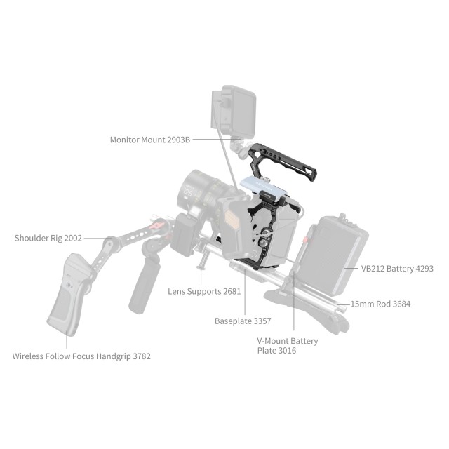 SmallRig Basic Cage Kit za kamero Blackmagic Design Cinema Camera 6K 4574 je zasnovan tako, da ustvarjalcem zagotavlja udobno snemanje pod nizkim kotom, ščiti kamero in ponuja več možnosti razširitve dodatne opreme. Komplet vključuje kletko, zgornji ročaj, objemko za kabel HDMI in USB-C, nosilec za SSD in podporo za adapter za objektiv. Tritočkovni sistem zaklepanja fotoaparat pritrdi z dvema vijakoma 1/4"-20 na dnu in vijakom 1/4"-20 na vrhu, vgrajene silikonske blazinice pa preprečujejo praske. Kletka omogoča neoviran dostop do vseh vmesnikov fotoaparata, rež za kartice, preklopnega zaslona in prostora za baterijo. Opora za adapter za objektiv je združljiva z adapterji za objektive Sigma MC-31, Sigma MC-21 in podobnimi adapterji, kar preprečuje, da bi se nastavek fotoaparata poškodoval. Komplet je opremljen tudi z objemkami za kable HDMI in USB-C, ki ščitijo vrata fotoaparata in preprečujejo izgubo signala. Ergonomski zgornji ročaj tipa ARRI ustvarjalcem omogoča udobno snemanje pod nizkim kotom in olajša rokovanje s fotoaparatom. Nosilec za pritrditev SSD je združljiv s SSD-ji Samsung T5/T7 in ima vgrajen nastavek za hladno podstavek za hitro montažo in demontažo. S številnimi možnostmi montaže, kot so luknje z navojem 1/4"-20, luknje z navojem 3/8"-16, lokacijske luknje ARRI, nastavki za hladno podstavek, tirnica NATO in nastavki QD, je komplet primeren za dodatno opremo, kot so magične roke, stranski ročaji, zgornji ročaji, objemke za palice, osnovne plošče, video luči LED, mikrofoni in drugo.
