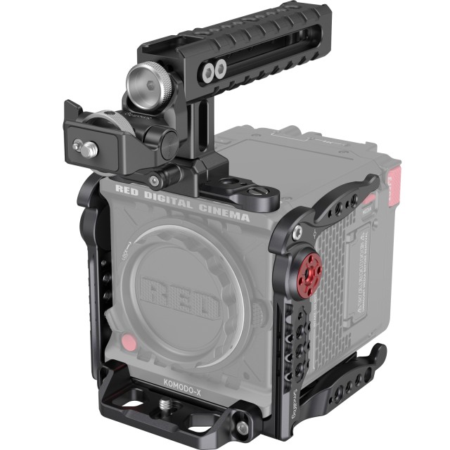 Kletka ima novo bionično zasnovo, ki je zelo skladna z zasnovo fotoaparata; modularna zasnova, zgornja plošča in osnovna plošča se lahko uporabljata neodvisno; po razstavitvi zgornje plošče je združljiva z ročajem KOMODO OUTRIGGER HANDLE in DSMC3 RED TOUCH 7.0". Komplet je opremljen z več vgrajenimi luknjami z navojem 1/4"-20, luknjami z navojem ARRI 3/8"-16, luknjami z navojem 3/8"-16, tirnicami NATO, pritrdišči za hladne čevlje in drugimi vmesniki, kar omogoča enostavno namestitev stranske ročice 3847, mikrofona, magične roke 3873 in druge dodatne opreme. Na sprednji del kletke je mogoče namestiti podporo za nastavek za objektiv, s pritrditvijo nastavka za nastavek Metabones zaščitite nastavek za objektiv fotoaparata in povečate stabilnost snemanja. Na dnu sta vgrajena ploščati izvijač in imbusni ključ za enostavno razstavljanje in sestavljanje.