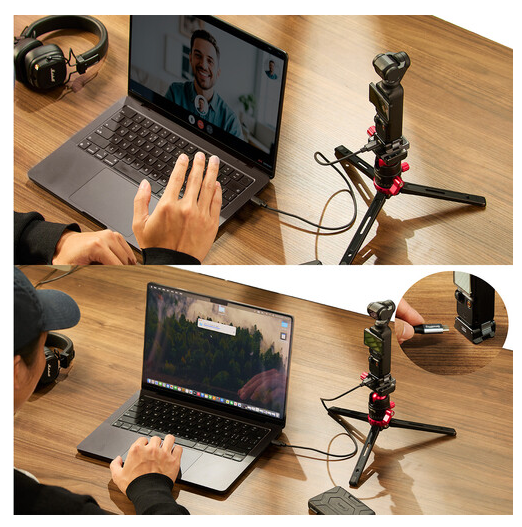 Namestite in napajajte svoj DJI Osmo Pocket 3 s ploščo za baterijo SmallRig, lahkotno 34-gramsko aluminijasto podlago z zložljivo dvokrakno sponko, vgrajeno ploščo za hitro sprostitev tipa Arca, 1/4"-20 navojem proti vrtenju in prehodnim USB-C polnjenjem (moški-ženski) s silikonsko oblogo za oprijem brez prask in stabilno delovanje v roki ali na stativu.