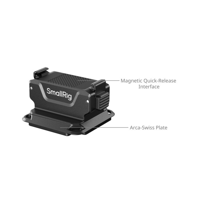 Na vrhu je najnovejši DJI dvostranski magnetni nosilec za hitro sprostitev, ki omogoča takojšnjo in varno pritrditev in odstranitev združljivih kamer. Spodnji del sledi univerzalnemu standardu Arca-Swiss, kar omogoča hitro pritrditev na SmallRig Arca-tip stative in sponke za nahrbtnike. Ta zasnova omogoča videografom hitro preklapljanje med ročnim, stativskim in sponko pritrjenim nastavitvami za učinkovito snemanje iz več zornih kotov.