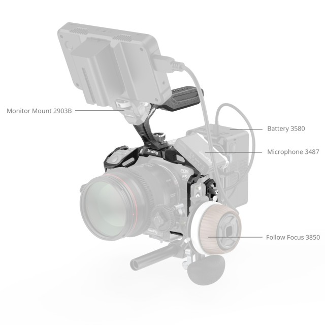 SmallRig "Black Mamba" Cage Kit za Canon EOS R5 Mark II 4976 je zasnovan za izboljšanje stabilnosti pri fotografiranju iz roke, prenosljivosti in razširitve dodatne opreme. Ta komplet vključuje kletko, sponko za kabel USB-C in HDMI ter zgornji ročaj HawkLock. Komplet uteleša eleganten slog "Black Mamba" in združuje estetiko s potrebami fotografov pri fotografiranju. Udoben oprijem zgornjega ročaja omogoča lažje prenašanje fotoaparata in fotografiranje pod nizkim kotom.