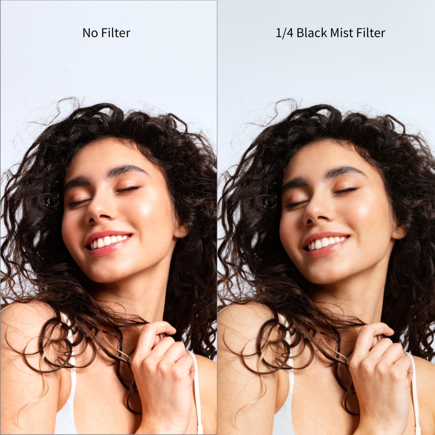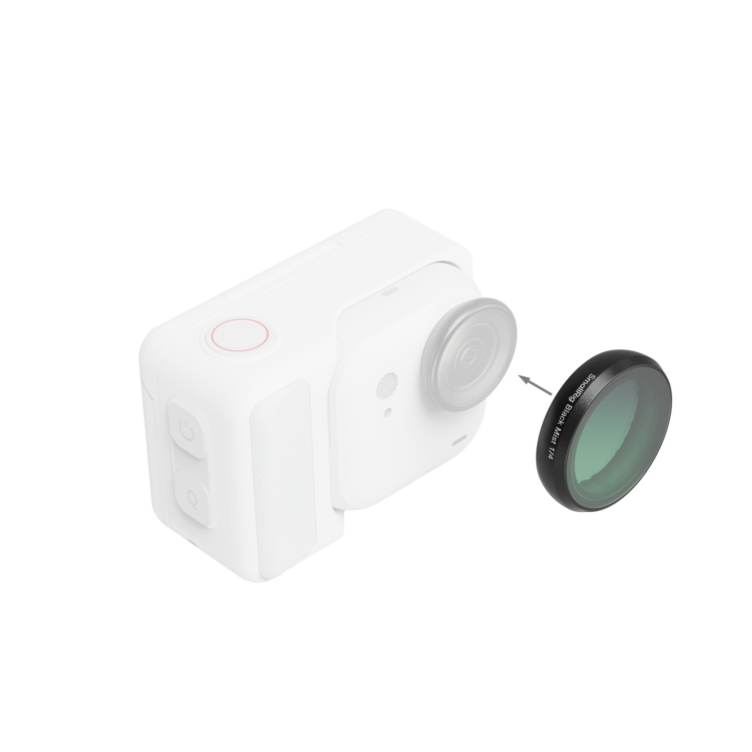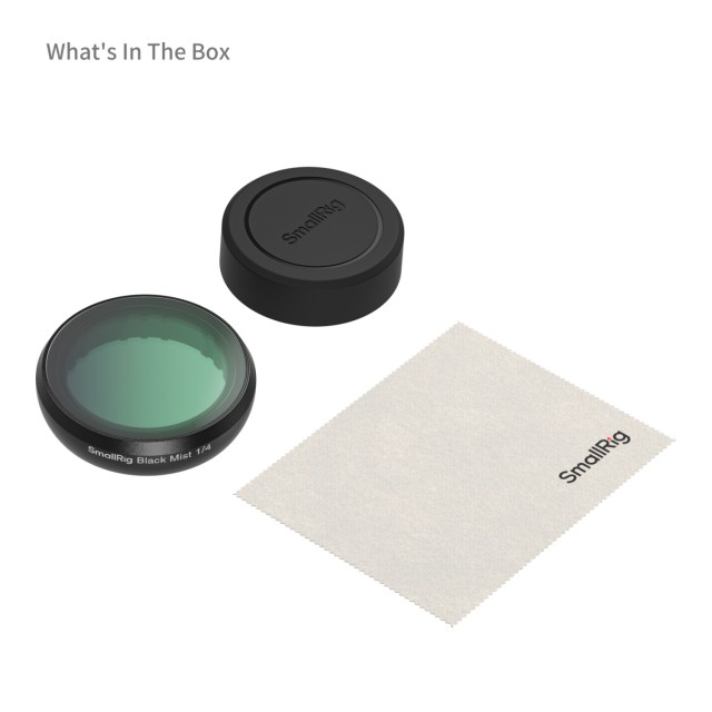 Paket vključuje 1/4 črni filter, silikonski pokrovček za objektiv in krpo za čiščenje. 1/4 črni filter zmehča svetlobne poudarke in ustvari sanjski, kinematografski učinek. Hitra zaskočna zasnova omogoča neposredno pritrditev brez potrebe po odstranjevanju objektiva, kar znatno izboljša učinkovitost snemanja.