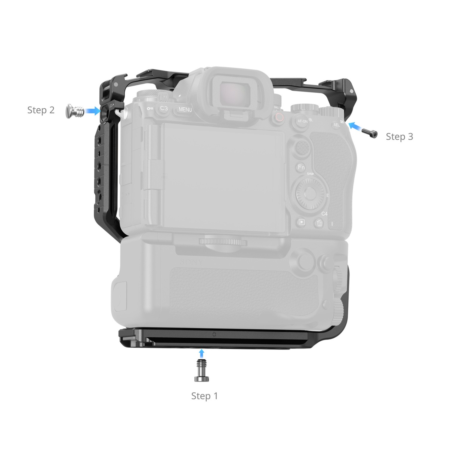 SmallRig Cage za Alpha 1 II in Alpha 9 III z vertikalnim ročajem VG-C5 5908 je zasnovan tako, da zagotavlja robustno zaščito in vsestranske možnosti pritrditve za vašo kamero. Pritrdi se z vijakom 1/4"-20 na dnu in dvema vijakoma M2,5 na straneh, z vgrajenimi silikonskimi blazinicami, ki preprečujejo praske. Kletka omogoča popoln dostop do vseh gumbov kamere, vrat, rež za kartice in predela za baterijo.