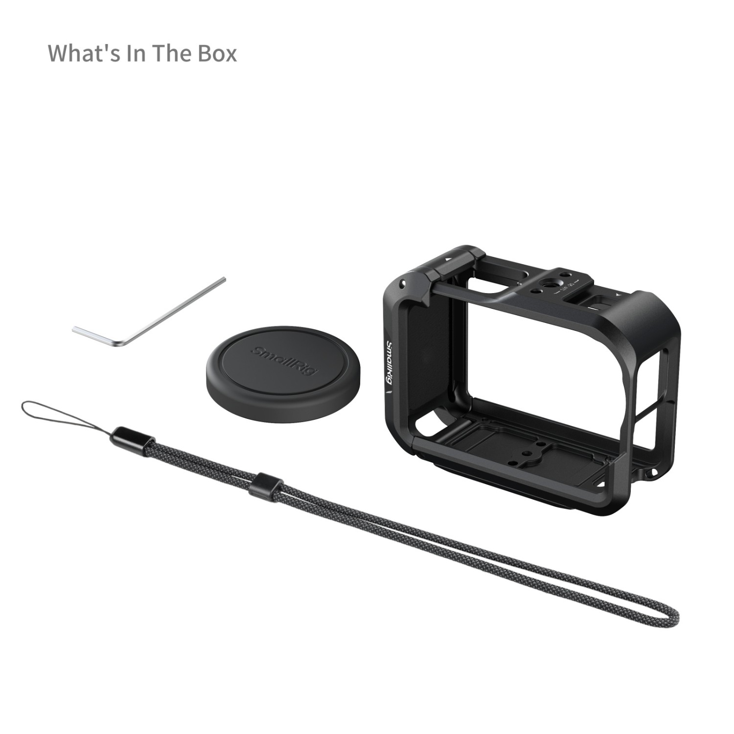 SmallRig Cage za DJI Osmo Action 6 (Advanced Edition) 5887 je zasnovan posebej za DJI Osmo Action 6. Ta kovinska kletka s polnim pokrivom zagotavlja robustno zaščito pred udarci, hkrati pa omogoča neoviran dostop do vseh gumbov in vrat. Več razširitvenih vmesnikov omogoča nemoteno pritrditev dodatkov, kar izboljša učinkovitost snemanja. Komplet vključuje kletko, zapestni trak, silikonski pokrovček za objektiv in imbus ključ.