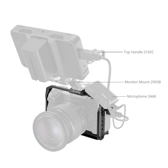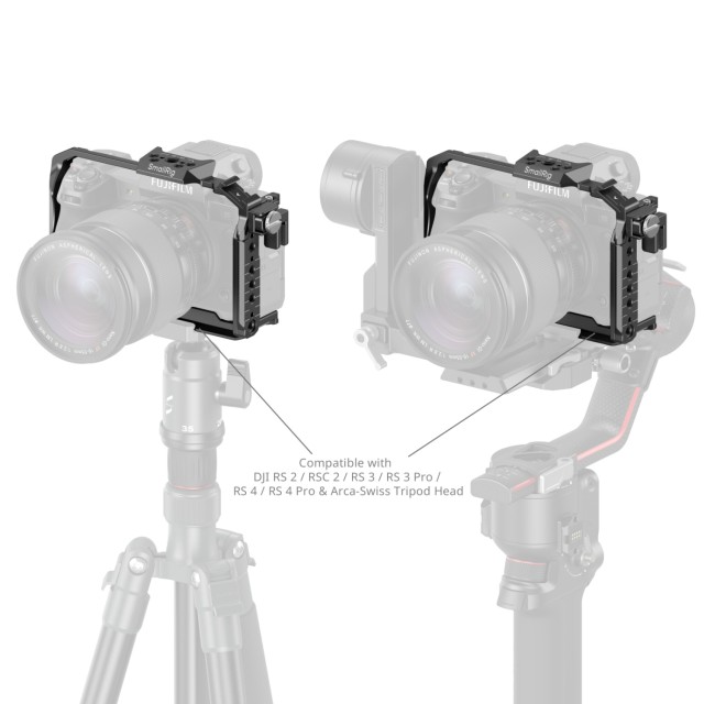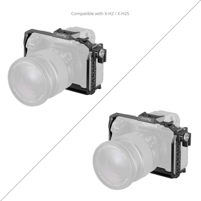 Kletka SmallRig za FUJIFILM X-H2 / X-H2S 3934B je zasnovana tako, da zagotavlja zaščitne lastnosti fotoaparata in hkrati ponuja različne razširitvene vmesnike. Kletka varno pritrdi fotoaparat s spodnjim vijakom 1/4"-20 in dvojnimi stranskimi bloki za pozicioniranje ter več vgrajenimi nedrsečimi silikonskimi blazinicami, ki preprečujejo praske. Poleg tega ne ovira dostopa do vmesnikov fotoaparata, zaslona LCD ali prostora za baterijo.