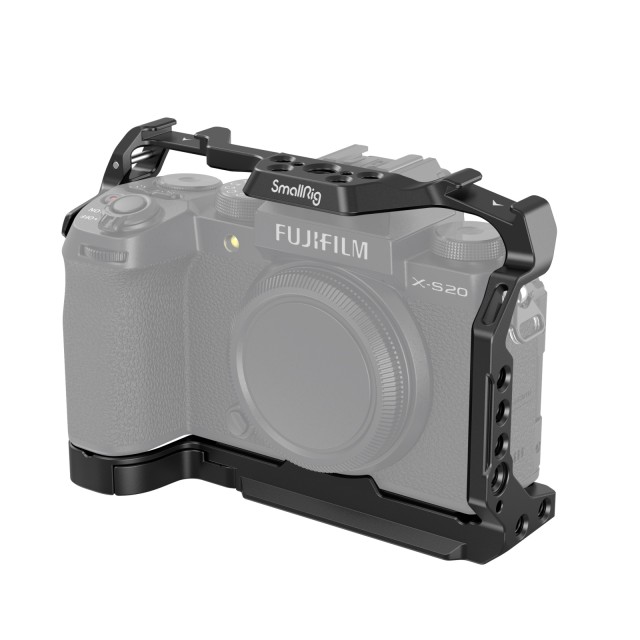 Klec SmallRig pro FUJIFILM X-S20 4230 je určena k ochraně fotoaparátu a k upevnění příslušenství. Upevnění fotoaparátu FUJIFILM X-S20 pomocí jednoho šroubu 1/4"-20 na spodní straně a jednoho šroubu M2,5 na pravé straně klece. Dodává se s gumovými podložkami, které zabraňují poškrábání, a umožňuje plný přístup k tlačítkům, slotům na karty, výklopnému displeji…