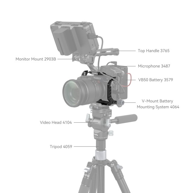 Mezi montážními body pro příslušenství je otvor se závitem 1/4"-20, otvor se závitem 3/8"-16 a polohovací otvor ARRI 3/8"-16 pro boční rukojeť 2093 a 3814, horní rukojeť 3765, držák monitoru 2903 a 2904, svorku kabelu HDMI 3637, destičku Manfrotto 1280 a 2458, držák pro přenosné napájecí baterie 2336 a destičku na baterie mini V Mount 2987; a polohovací otvor 1/4"-20 je vhodný pro svorku na jednu tyč 3598 a rameno Magic Arm 3873. Kromě toho jsou k dispozici dvě studené patky pro upevnění mikrofonů a LED videosvětel pro Vlogging; otvory pro popruhy pro ruční popruh 3848 a 2456; a úchyty QD pro sponu QD pro popruh. Spodní rychloupínací destička Arca Swiss podporuje stativy typu Arca nebo gimbaly DJI RS 2 / RSC 2 / RS 3 / RS 3 Pro pro rychlé přepínání mezi režimy gimbalu, ručního držení a stativu. Součástí balení je také oboustranný klíč pro snadnou demontáž a montáž.