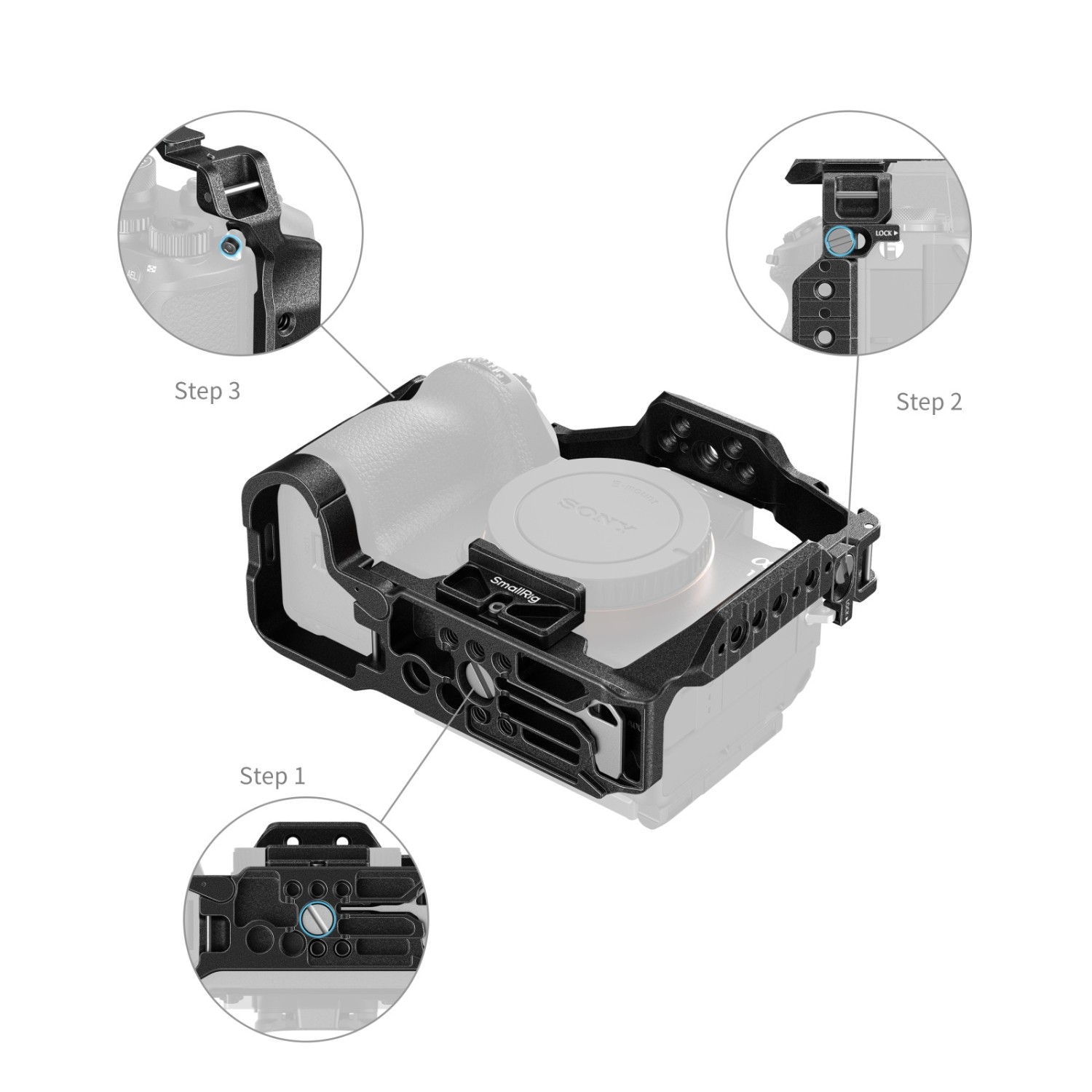 SmallRig Cage za Sony Alpha 1 II / Alpha 9 III 5642 je posebej zasnovan za fotografe divjih živali. Kletka ima tritočkovni sistem zaklepanja, ki uporablja spodnji vijak 1/4"-20 in dvojne stranske vijake za pritrditev kamere in preprečevanje upogibanja, vgrajene blazinice pa jo ščitijo pred praskami. Vgrajena podpora za telekonverter je združljiva z modeli Sony FE 1,4x in 2,0x, kar zmanjšuje obremenitev nosilca objektiva in omogoča stabilnejše posnetke pri dolgih goriščnih razdaljah.