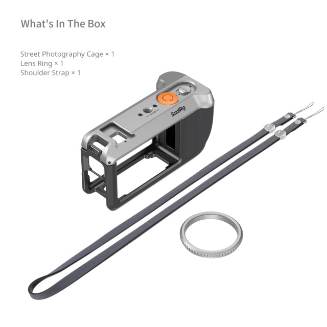 SmallRig namenski okvir za ulično fotografijo za DJI OSMO Action 6 5891združujeizpopolnjen retro stil kamere s praktično funkcionalnostjo za ulične fotografe, ki cenijo tako estetiko kot zmogljivost. Komplet vključuje okvir za ulično fotografijo, ramenski pas in zaščitni obroč za objektiv.