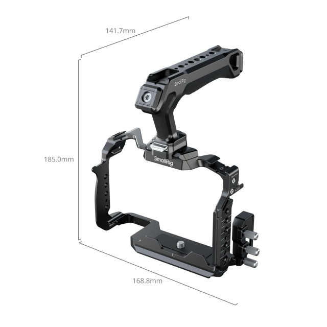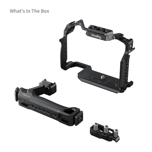 SmallRig Cage Kit za Panasonic G9 II / S5 II / S5 IIX 5752 je zasnovan za pomoč pri snemanju iz roke in pritrditev dodatkov. Vključuje kletko, sponko za kabel HDMI in USB-C ter zgornji ročaj, ki je ergonomsko oblikovan za boljši oprijem in se s sponko NATO pritrdi na kletko, medtem ko sponka za kabel, ki se pritrdi s krilnim vijakom, lahko hkrati pritrdi kable HDMI in USB-C. Med pritrdilnimi točkami za dodatno opremo so navojne luknje 1/4"-20, ki podpirajo stranski ročaj 3323; hladne čevlje so primerne za SSD držalo 5196, mikrofon, LED video luč, monitor itd.; luknje ARRI 3/8"-16 pa so primerne za monitor držalo 2903B. Na levi strani je tudi HawkLock H21 NATO vodilo za stranski ročaj 4485 in luknje za trak na obeh straneh, ki so združljive z ročnim trakom. Poleg tega je priložen magnetni ključ za enostavno razstavljanje in sestavljanje.