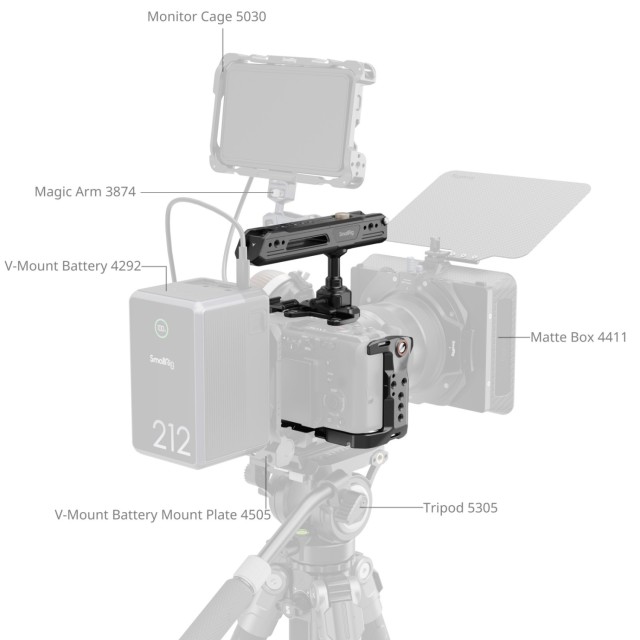 Odstranljiva NATO-tirnica (zgornja plošča): združljiva z zgornjim ročajem Sony XLR ali vrtljivim zgornjim ročajem SmallRig (ID 4152) za nemoteno delovanje EVF