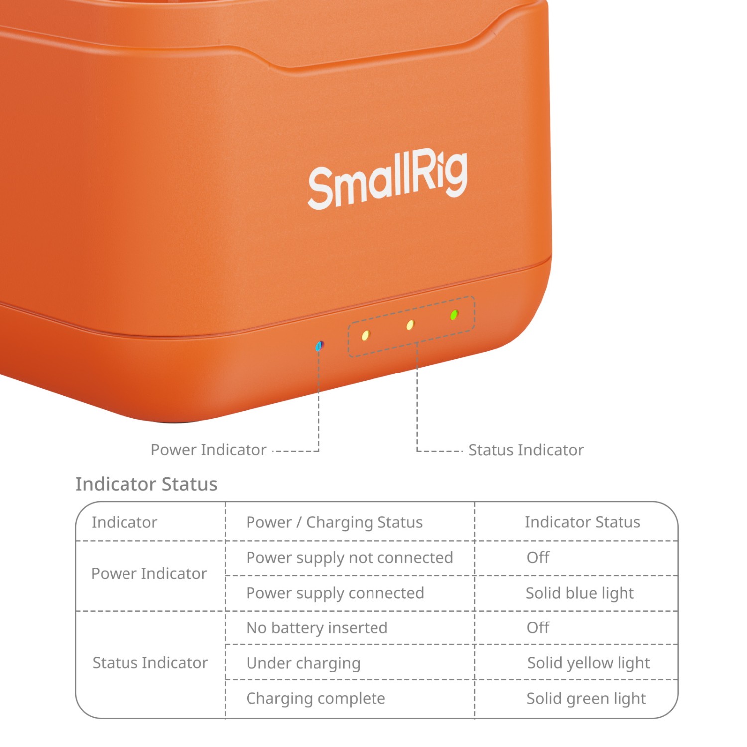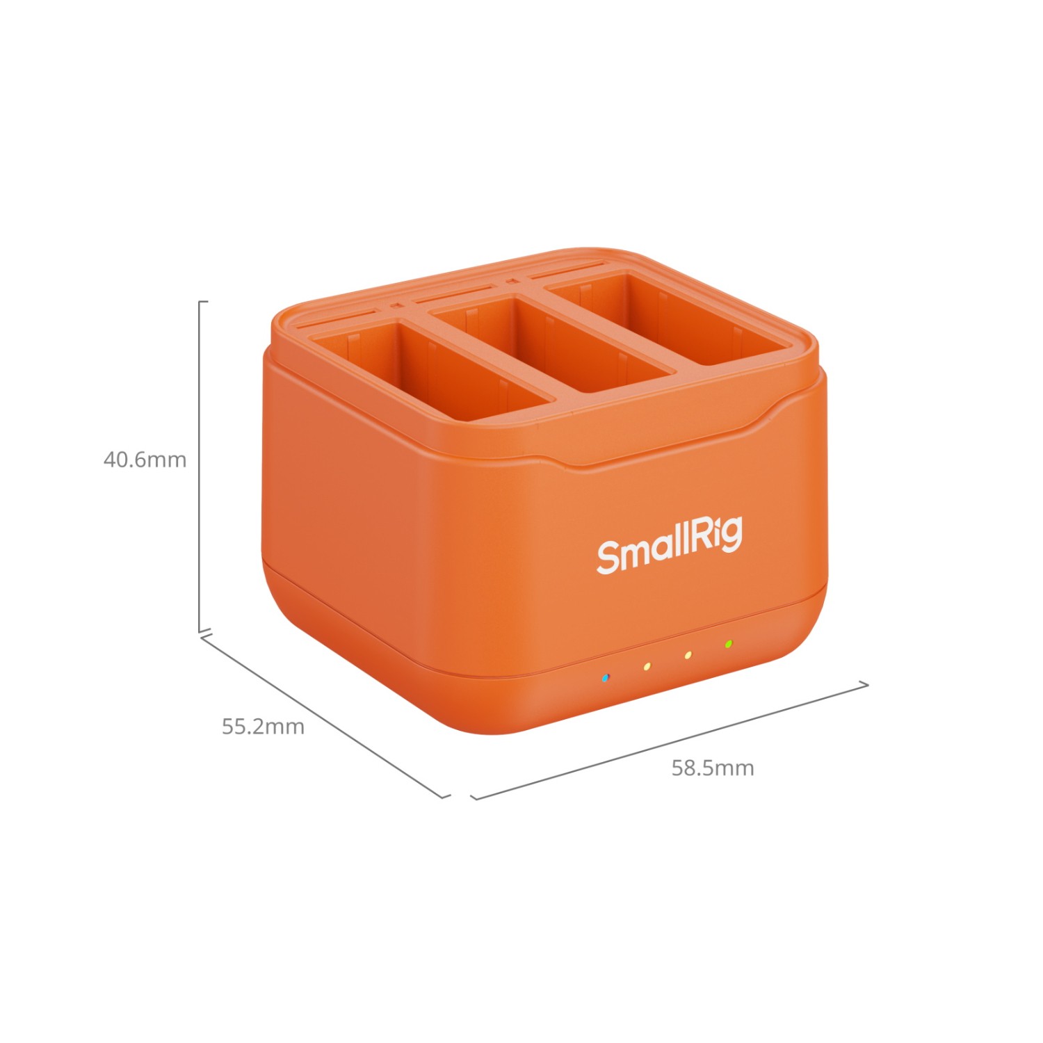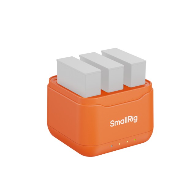 SmallRig polnilnik baterij za kamere DJI Action 6 5921 je visoko učinkovita rešitev za polnjenje, združljiva s kamerami DJI Osmo Action 6, Action 5 Pro in Osmo 360. Podpira 5V/1A vhodno napetost prek polnilnega adapterja in ima tri posamezne reže za baterije, kar omogoča hkratno polnjenje treh baterij za učinkovito polnjenje.