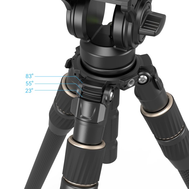 SmallRig Carbon Fiber Tripod Kit FT-S303 4643 je stativ iz ogljikovih vlaken, zasnovan za profesionalno videografijo na prostem. Noge imajo zasnovo za hitro zategovanje FreeSpeed-Twist, ki omogoča enostavno in učinkovito nastavitev z zategovanjem dvojnih gumbov za zaklepanje vseh treh delov. Delovna višina je od 27 cm (10,6 palca) do 150 cm (59,0 palca), kompaktna dolžina za shranjevanje pa znaša 74 cm (29,1 palca). Uporaba premera 30 mm za noge zagotavlja lahkotno zasnovo brez zmanjšanja stabilnosti in nosilnosti. Ta stativ, ki ima vgrajeno mehurčkasto nivelirko, deluje s 65-milimetrsko skledo za niveliranje in enostavno upravljanje nivoja okvirja. Komplet vključuje kompaktno fluidno glavo z blažilnim sistemom, ki omogoča nemoteno premikanje fotoaparata.