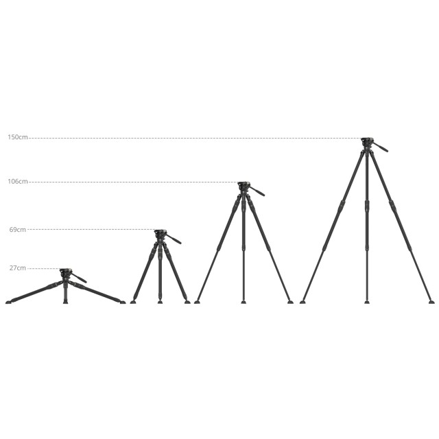 SmallRig Carbon Fiber Tripod Kit FT-S303 4643 je stativ iz ogljikovih vlaken, zasnovan za profesionalno videografijo na prostem. Noge odlikuje zasnova hitrega zategovanja FreeSpeed-Twist, ki omogoča enostavno in učinkovito nastavitev z zategovanjem dvojnih gumbov za zaklepanje vseh treh delov. Delovna višina sega od 27 cm (10,6 palca) do 150 cm, kompaktna dolžina za shranjevanje pa znaša 74 cm (29,1 palca). Uporaba premera 30 mm za noge zagotavlja lahkotno zasnovo brez zmanjšanja stabilnosti in nosilnosti. Ta stativ, ki ima vgrajeno mehurčkasto nivelirko, deluje s 65-milimetrsko skledo za niveliranje in enostavno upravljanje nivoja okvirja. Komplet vključuje kompaktno fluidno glavo z blažilnim sistemom, ki omogoča nemoteno premikanje fotoaparata. Ko je njeno težišče postavljeno na višino 50 mm, lahko s paniranjem in vnaprej nastavljenim fiksnim sistemom protiuteži natančno upravljate fotoaparat ali druge naprave, težke do 4 kg, za odlično protiutež. Video glava lahko nosi do 6 kg. Ima na novo zasnovano pritrdišče s ploščico za hitro sproščanje, ki je učinkovitejša montažna rešitev od tradicionalnih drsnih, ki je združljiva s ploščico za hitro sproščanje serije DJI RS in ploščico za hitro sproščanje 501PL, da se uresniči prosto preklapljanje med snemanjem s stabilizatorjem in snemanjem s stativom. Komplet ima tudi luknje z navojem 1/4"-20 in 3/8"-16 za pritrditev dodatne opreme, kot so magične roke, skupaj z vgrajenim vijakom z ravno glavo za priročno namestitev in odstranitev fotoaparata. Tehta le 2,9 kg.