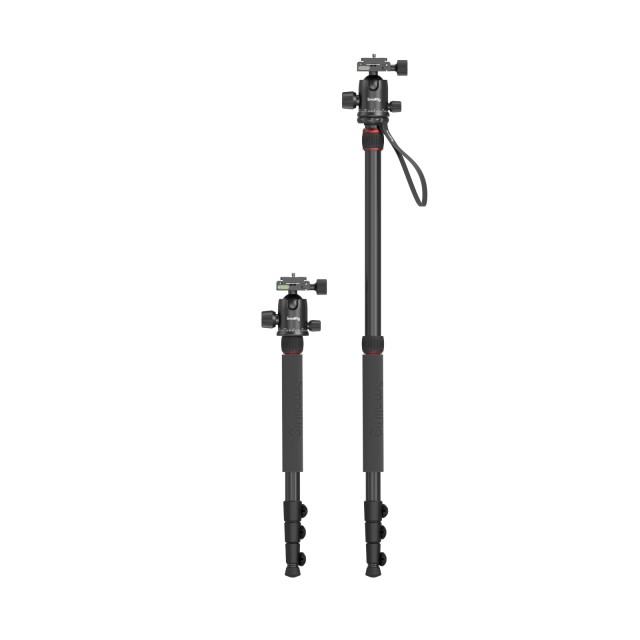 Aluminijasti stativ za kamere SmallRig CT-10 3935 je namenjen predvsem za snemanje videoposnetkov, snemanje, prenos v živo itd. Na vrhu ima vijak 1/4"-20 za pritrditev dodatne opreme, za večjo združljivost pa je opremljen z vijakom 1/4"-20 × 3/8''-16. Ta kompaktni izdelek, ki ga je mogoče podaljšati do 180 cm in zložiti na 43 cm, tehta le 1530 g in je primeren za fotografiranje na prostem. Kovinska kroglična glava, ki se vrti za 360°, ima kroglico Φ36 mm, ki je trpežna in stabilna; robustne noge iz aluminijeve zlitine lahko zdržijo do 15 kg, na nosilcu pa so tri luknje z navojem 1/4"-20 za pritrditev naprav po potrebi. Stativ lahko preprosto spremenite v monopod, priloženi pa so mu trije mehurčkasti nivelirji, ki izpolnjujejo različne zahteve za kalibracijo. Priloženo je tudi držalo za pametni telefon za prenos v živo in snemanje kratkih video vlogov.