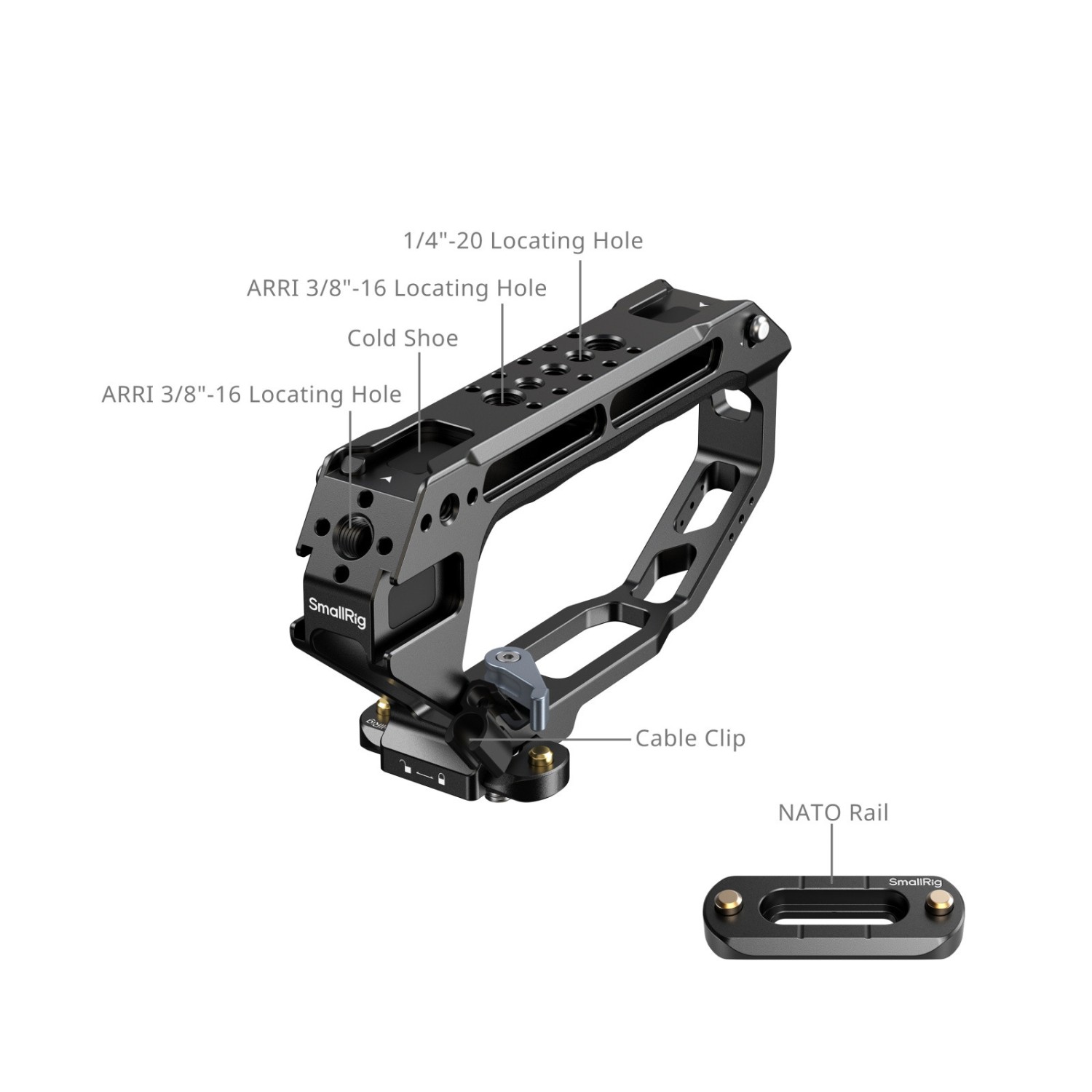 Opremljen z več vmesniki za montažo, vključno z 1/4"-20 pritrdilnimi luknjami, hladnimi nosilci in ARRI 3/8"-16 pritrdilnimi luknjami, se ta zgornji ročaj brezhibno integrira z dodatki, kot so nosilec monitorja (ID 2903B), magic arm (ID 4194) in mikrofoni, kar zagotavlja vsestranskost za različne scenarije snemanja.