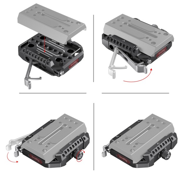SmallRig Manfrotto Drop-in Baseplate 2887B je zasnovan za hitro namestitev Manfrotto plošče za hitro sproščanje. Po vstavitvi je mogoče hitro zakleniti ploščo za hitro sproščanje in jo natančno prilagoditi glede na širino plošče za hitro sproščanje. Ko je odklenjena, je na voljo vmesni položaj. Položaj zaklepanja lahko nastavite naprej in nazaj, da preprečite, da bi plošča za hitro odpiranje zdrsnila iz osnovne plošče. Plošča za hitro odpiranje je vnaprej nastavljena z dvema vijakoma proti padcu, ki preprečujeta, da bi plošča za hitro odpiranje med nastavljanjem razdalje padla. Rezerviranih je pet navojnih lukenj proti padcu, vijaka proti padcu pa lahko namestite glede na dejanske potrebe uporabnika. Na dnu ima več lukenj z navojem 1/4''-20 in 3/8''-16 za pritrditev na stativ ali naprej.