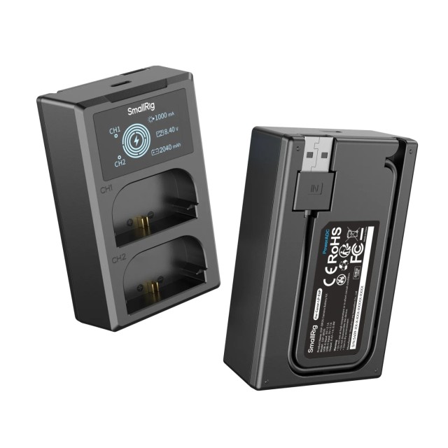 Vsaka baterija ima resnično nazivno zmogljivost 2520 mAh, kar zagotavlja daljši čas fotografiranja pri zahtevnih delovnih postopkih. Polnilec je opremljen z dvema neodvisnima režama, ki omogočata hkratno polnjenje dveh baterij ali ene same baterije, kar optimizira učinkovitost pri nastavitvah z več baterijami. Pametni zaslon LCD omogoča spremljanje polnilnega toka, polnilne napetosti, napredovanja polnjenja in akumulirane vhodne energije v realnem času. Poleg tega polnilec vključuje vhodna vrata USB-A in USB-A, zato je združljiv z zidnimi adapterji, avtomobilskimi polnilniki in električnimi bankami za vsestranske možnosti polnjenja.