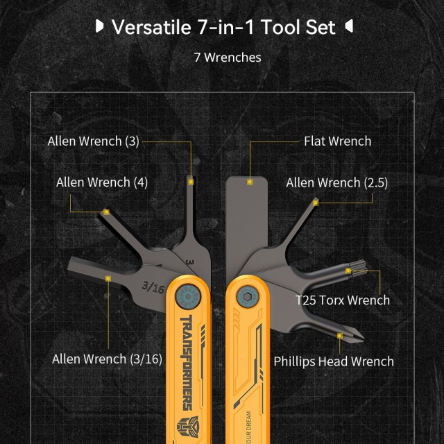 · 7-v-1 večnamenski komplet: Vključuje 4 imbus ključe (2,5 mm, 3 mm, 4 mm, 3/16"), 1 izvijač z ravno glavo, 1 križni izvijač in 1 Torx T25 izvijač
