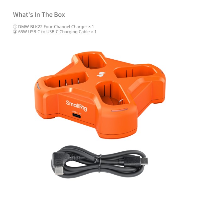 SmallRig štirikanalni polnilnik baterij za kamere DMW-BLK22 5748 je visoko učinkovit polnilnik z visoko močjo, zasnovan za baterije DMW-BLK22. Z maksimalnim vhodom 45 W in popolno združljivostjo s protokoli (vključno z adapterji 5 V/1 A) inteligentno razvršča polnjenje glede na moč adapterja.
