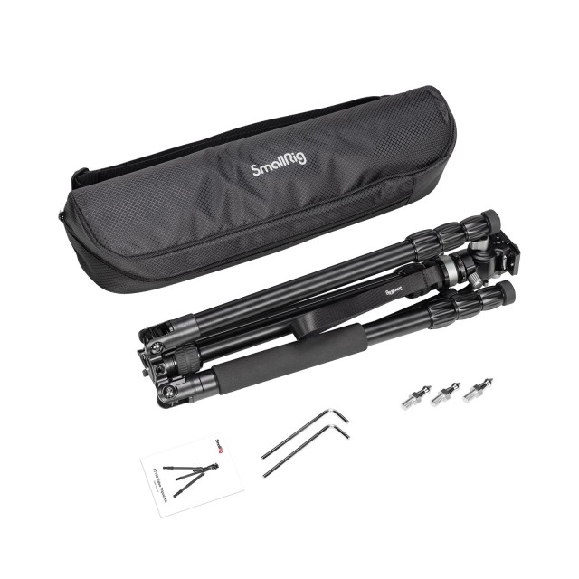 SmallRig CT190 Video Tripod Kit 4319 je natančno zasnovan za snemanje videoposnetkov, pretakanje v živo, vloganje itd., zlasti na prostem. Ima vzvratno zložljive noge iz aluminijeve zlitine, ki jih je mogoče zložiti do 45 cm, in sredinski steber za večjo stabilnost. Štirisekcijske noge z zaklepanjem z gumbom omogočajo, da delovno višino v nekaj sekundah prilagodite do 184 cm, snemljiv sredinski stolpec pa lahko obrnete za snemanje pod nizkim kotom. Če razstavite eno od nog in jo pritrdite na glavo, lahko stativ spremenite v monopod. Za hitro nastavitev kota, ki ustreza vašim potrebam, je na voljo 3-stopenjski gumb (23° / 55° / 79°). Video glava 4170 je na vrhu opremljena z vgrajenim podstavkom za skledo, ki omogoča nastavitev za 10 / -10° za hitro izravnavo; snemljivim teleskopskim ročajem, združljivim na levi ali desni strani, za lažje shranjevanje in večjo prenosljivost; in vgrajenim ključem za hitro namestitev ali odstranitev kamere. Poleg tega se obrača za 360° in nagiba za 90° / -55° za stabilno snemanje z različnih zornih kotov. Poleg tega lahko ta stativ z dvema luknjama z navojem 1/4"-20 podpira dodatno opremo, kot je magična roka. Tehta le 1,8 kg, prenese pa kar 4 kg, zato je dober spremljevalec za fotografiranje na prostem.