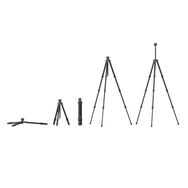 Krogelna glava omogoča tudi navpično snemanje za različne scenarije fotografiranja. Plošča za hitro sproščanje krogelne glave ima obliko vrtljivega diska brez vidnih gumbov, kar zagotavlja eleganten in minimalističen videz, hkrati pa omogoča uporabo različnih velikosti plošč za hitro sproščanje Arca-Swiss. Glava je zavarovana z vzvodom za hitri sprostitev, ki fotografom omogoča hitro in priročno zaklepanje glave. Z nosilnostjo do 8 kg lahko krogelna glava drži objektive od srednjih do teleobjektivov. Točke za pritrditev nog stativa imajo razširitvene luknje z navojem 1/4"-20, ki omogočajo pritrditev dodatne opreme, kot so magična roka, mikrofon, monitor ali oddajnik slike. Silikonske blazinice za noge imajo skrite bodice, ki so primerne za različne zahtevne terene in jih lahko uporabite, ko odvijete silikonske blazinice za noge.