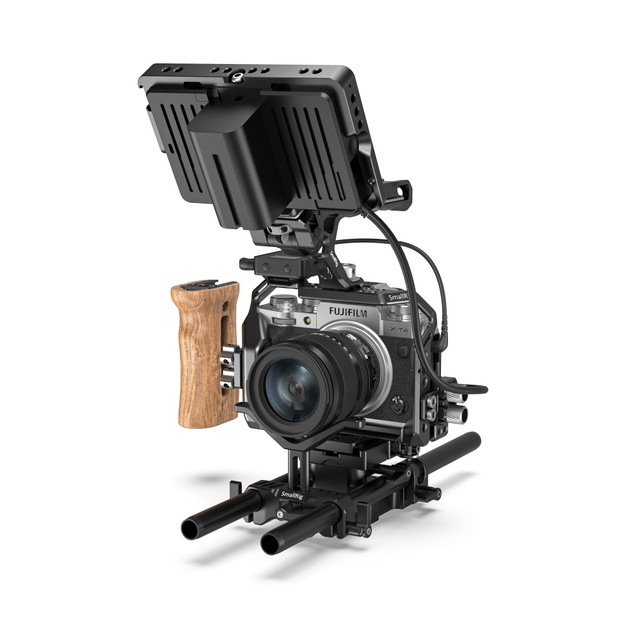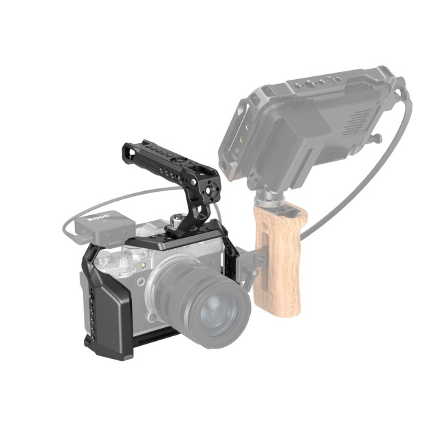 Fujifilm X-T4 3723 SmallRig Handheld Kit je zasnovan tako, da omogoča snemanje pod nizkim kotom, ščiti fotoaparat in zagotavlja nastavke za dodatno opremo. Komplet vključuje celotno kletko, ročaj za pozicioniranje ARRI ter objemko za kable HDMI in Type-C. Oblikovno prilegajoča se celotna kletka ponuja veliko različnih pritrdilnih točk, kot so luknje z navojem 1/4'-20, luknje za pozicioniranje ARRI 3/8"-16, hladni čevlji, tirnica NATO za magično roko, stranski ročaj, luč LED in mikrofon itd. Objemka za kabla HDMI in Type-C preprečuje nenamerno prekinitev povezave in zagotavlja stabilen prenos signala. Ergonomsko oblikovan zgornji ročaj omogoča udobno in stabilno snemanje pod nizkim kotom ter pritrjevanje dodatne opreme, kot so luknje z navojem 1/4'-20, luknje za pozicioniranje ARRI 3/8'-16, hladni čevlji, ki podpirajo namestitev monitorja, magična roka in druga dodatna oprema.