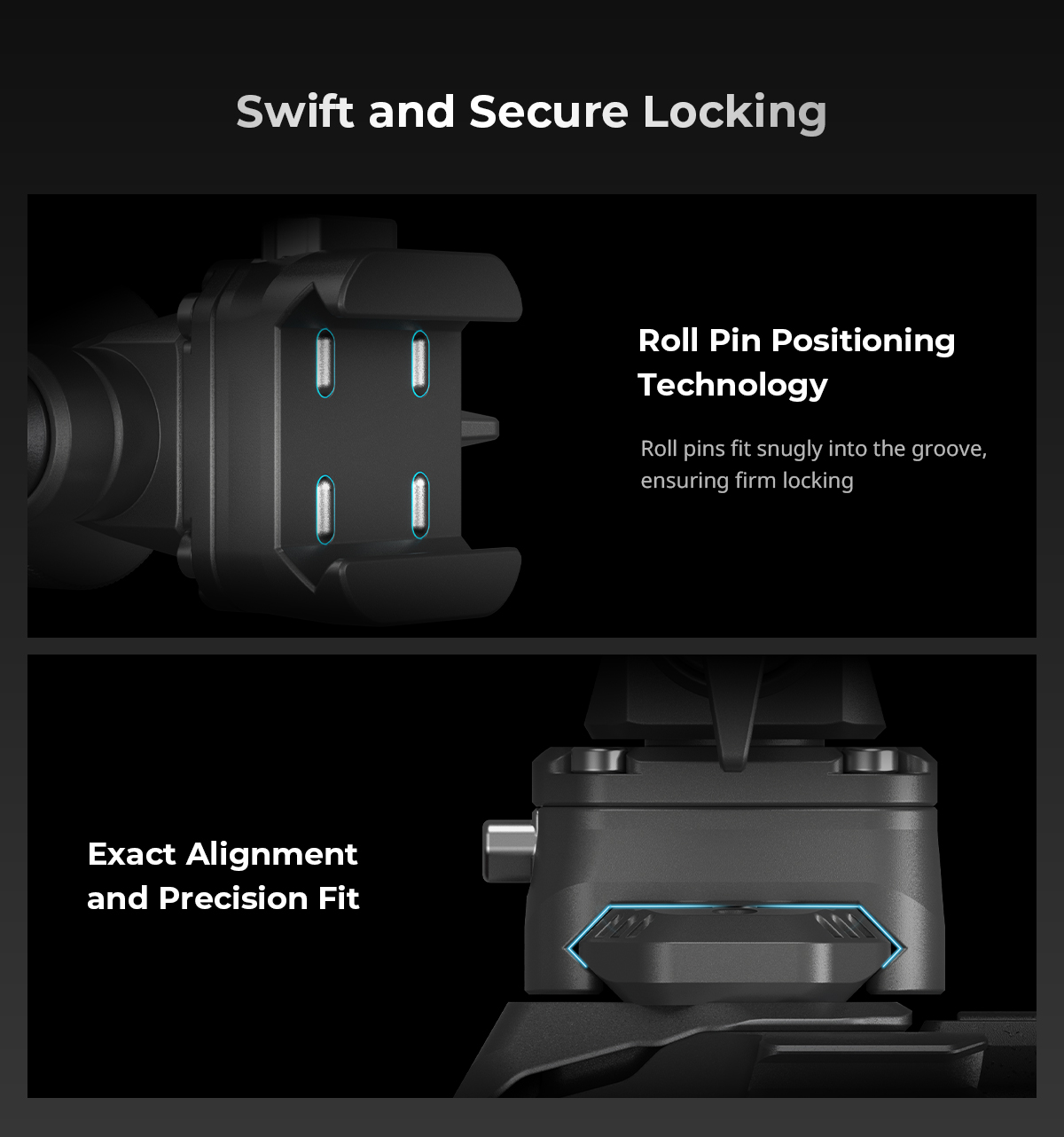 1. Izjemna patentirana struktura QR-Slide za objemko NATO z visečimi zatiči, ki po drsenju v utor zaklenejo tirnico, zaradi česar je stabilna in se ne upogiba.