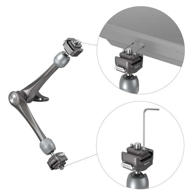 SmallRig HawkLock H21 Quick Release Rosette Magic Arm (11") 4489 je izdelan iz letalske aluminijaste zlitine in nerjavečega jekla. Ima ekskluzivno patentirano strukturo hitrega drsnika z notranjimi valjčki, ki omogočajo varno navpično zaklepanje. Zasnova z dvema hitrima vijakoma 1/4"-20 omogoča zunanjo pritrditev monitorjev, video luči, mikrofonov, pametnih telefonov, iPadov, akcijskih kamer in še več.
