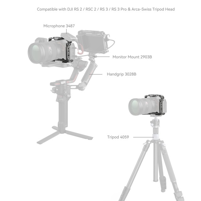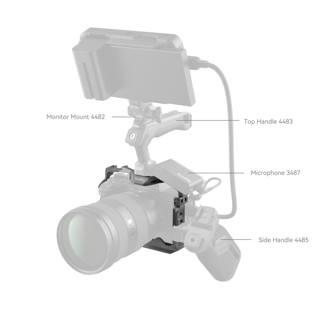 Kletka SmallRig HawkLock Quick Release Cage za Sony Alpha 7R V / Alpha 7 IV / Alpha 7S III / Alpha 1 / Alpha 7R IV 4481 je zasnovana tako, da omogoča pritrditev dodatne opreme in zaščito fotoaparata. Patentirana samorazvita struktura hitrega sproščanja (imenovana HawkLock) zajema hladne čevlje, tirnico NATO in arca swiss, ki se uporablja z ekološko opremo HawkLock za uresničitev trdnega in brez napačnega položaja, enega pritiska za nalaganje, sprostitve za zaklepanje in izboljšanja učinkovitosti razstavljanja. Fotoaparat zaklene z enim spodnjim lokacijskim zatičem, enim vijakom 1/4"-20 in enim vijakom M2,5 na levi strani. Adapterje za stransko zaklepanje je treba prilagoditi v smeri namestitve, da ustrezajo različnim tipom fotoaparatov; natisnjena oznaka "A7 IV" velja za Alpha 7 IV in Alpha 7R V, natisnjena oznaka "A7S III" pa za Alpha 7S III / Alpha 1 / Alpha 7R IV. Vgrajeni vsestranski zaščitni distančniki preprečujejo, da bi se fotoaparat opraskal. Kletka omogoča dostop do vmesnikov, izbirnikov, gumbov ali vratc baterije. V predelu za baterijo je vretenasti ključ, ki se prilega krivini fotoaparata in pušča prostor za mali prst za udoben oprijem. odprtine z navojem 1/4"-20, lokacijske odprtine ARRI 3/8"-16 in pritrdišča HawkLock cold shoe podpirajo zgornji ročaj 2165C, stranski ročaj 2093, držalo za monitor 2903, mikrofone, luči LED, monitorje itd. Spodnja vtičnica QD podpira ramenski pas QD. HawkLock Arca-Swiss plošča za hitro sproščanje na dnu je združljiva z DJI RS 2 / RSC 2 / RS 3 / RS 3 Pro, ploščo za hitro sproščanje (riser plate) stabilizatorja DJI RS 2/RSC 2 za snemanje s stabilizatorjem in Arca-Swiss ploščo za hitro sproščanje 3154. Odprtine na straneh in dnu kletke omogočajo pritrditev dodatne opreme, kot je trak za roke PAC2456. Poleg tega ima kletka vgrajen magnetni ključ, ki olajša razstavljanje in sestavljanje.