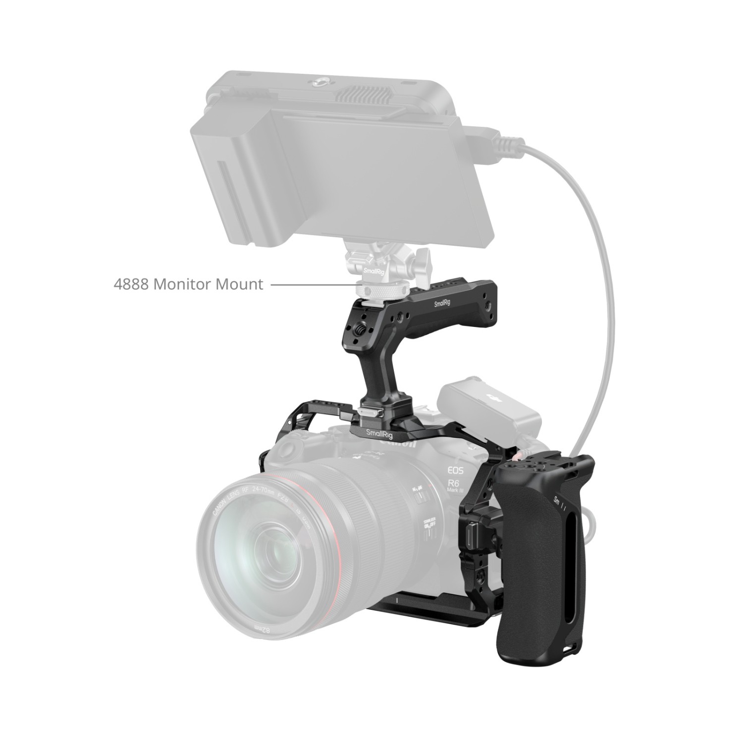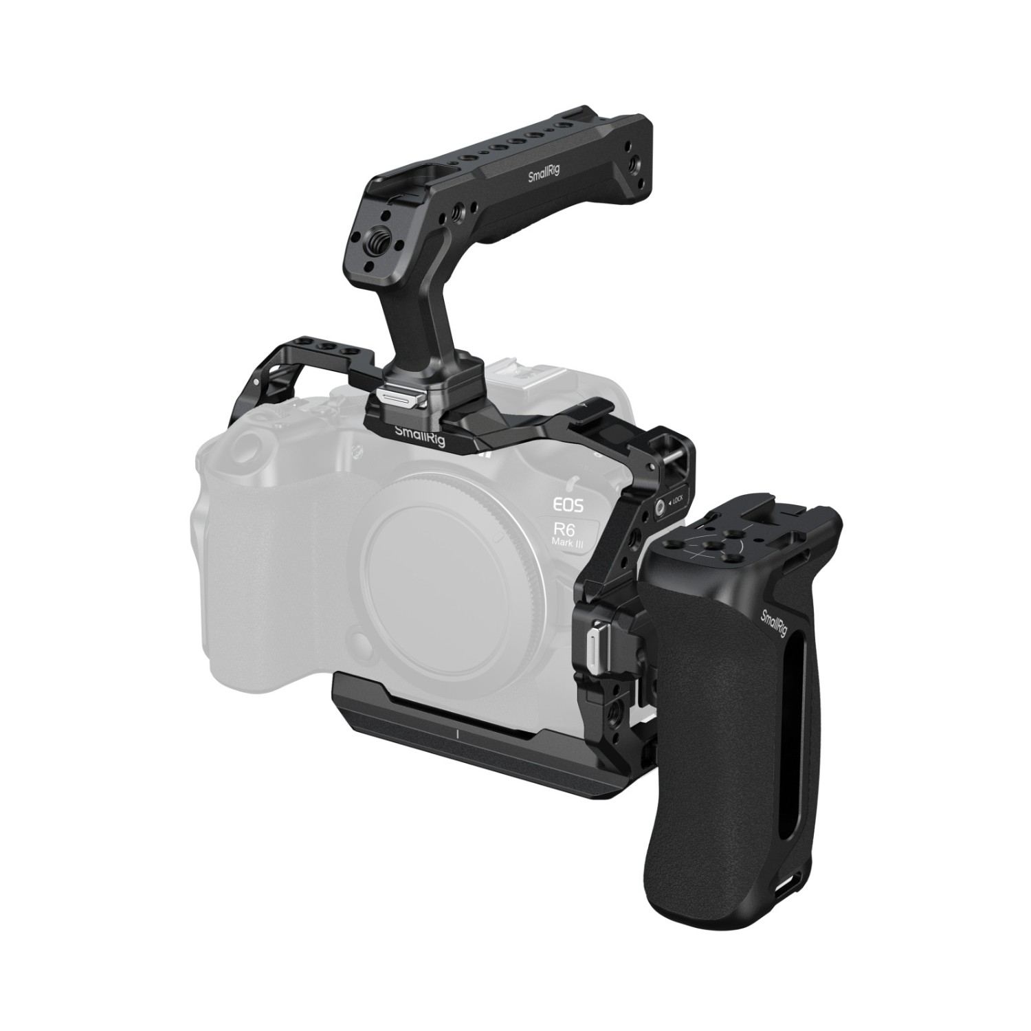 SmallRig »HawkLock« komplet za hitro sprostitev za Canon EOS R6 Mark III / R6 Mark II (napredna izdaja) 5958 je strokovno izdelan za izboljšanje izkušnje pri snemanju iz roke, hkrati pa ponuja celovito zaščito kamere in vsestranske možnosti pritrditve. Komplet vključuje ohišje, sponko za kabel USB-C in HDMI, zgornji ročaj »HawkLock« in stranski ročaj »HawkLock«.