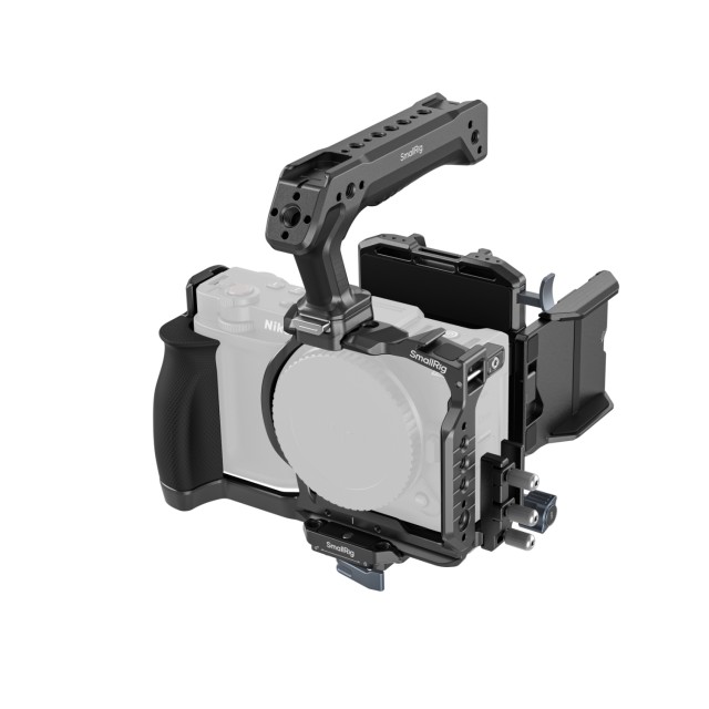 SmallRig »HawkLock« komplet za hitro sprostitev za Nikon ZR 6113 je kompaktna ročna rešitev za napajanje, ki zagotavlja profesionalno napajanje z baterijo V-mount, hkrati pa ohranja aerodinamično, stabilno in lahko namestitev. Zasnovan za prenosljivost, njegova zložljiva plošča za pritrditev baterije zagotavlja enostaven prevoz in hitro namestitev na lokaciji. Ta celovit komplet vključuje kletko, ploščo za pritrditev baterije V-mount, zaščitnik zaslona LCD, elastični zaponki, zgornji ročaj za hitro sprostitev »HawkLock« in sponko za kabel HDMI.