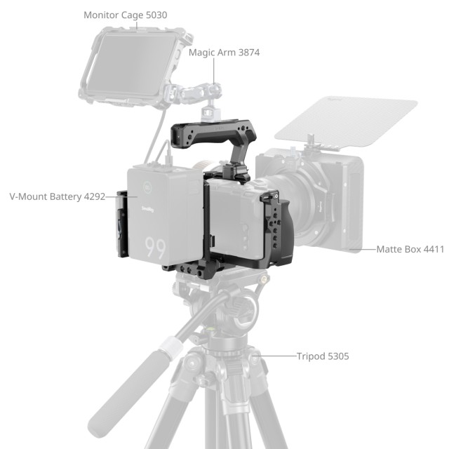 Kletka ponuja številne možnosti pritrditve, vključno z navojnimi luknjami 1/4"-20, lokacijskimi luknjami 1/4"-20, lokacijskimi luknjami ARRI 3/8"-16 in NATO-tirnico s hitrim sprostilnim mehanizmom »HawkLock«, kar omogoča združljivost z dodatki, kot so nosilci za monitorje (ID 4487, 2903B) in stranskimi ročaji (ID 5633, 4485). Vgrajen nosilec za hladno stopalo podpira mikrofone ali luči (ID 4660), medtem ko QD vtičnica na dnu sprejme QD ramenske trakove (ID 4118B). Magnetni ključ z dvojno glavo je shranjen na dnu za enostavno sestavljanje.