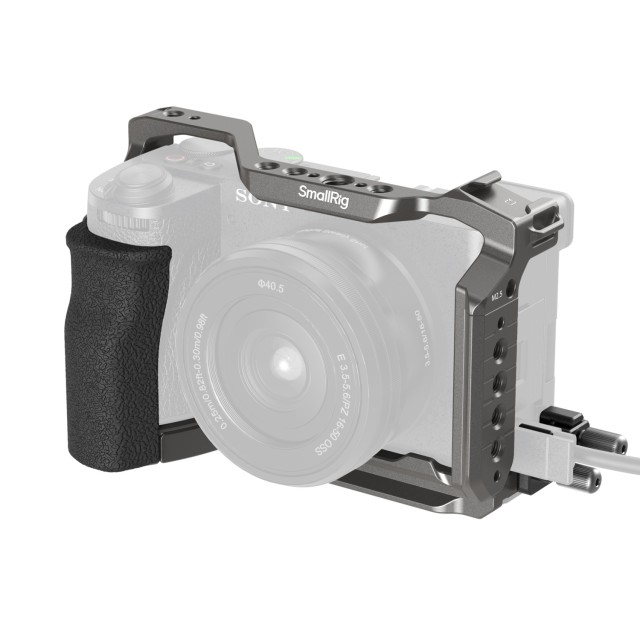 Kletka ima tritočkovni sistem zaklepanja, ki vključuje zatič na dnu in vijake M2,5 na obeh straneh, kar zagotavlja varno in trdno namestitev. Poleg tega ima po vsej površini silikonsko oblogo, ki ščiti fotoaparat pred praskami. Poleg tega vratca na tečajih na predelu za baterijo izboljšajo oprijem, saj zagotavljajo dodatno oporo malemu prstu. Sponka za kabel HDMI ima vijak s palcem za pritrditev brez orodja na levo stran ohišja, kar zagotavlja varno povezavo za stabilen prenos podatkov.
