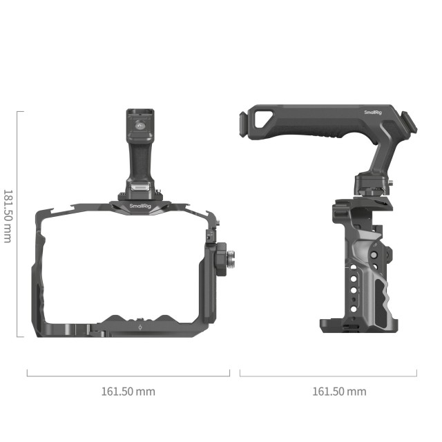 SmallRig HawkLock Quick Release Cage Kit za Sony Alpha 7R V / Alpha 7 IV / Alpha 7S III 4538 je zasnovan tako, da omogoča snemanje pod nizkim kotom in ščiti fotoaparat, hkrati pa ponuja široko paleto pritrdišč za dodatno opremo. Vključuje kletko, objemko za kabel HDMI, tirnico NATO in zgornji ročaj. Patentirana samorazvita struktura hitrega sproščanja (imenovana HawkLock) zajema hladne čevlje, tirnico NATO in arca swiss, ki se uporablja z ekološkimi dodatki HawkLock za uresničitev trdnega in brez napačnega položaja, enega pritiska za nalaganje, sprostitve za zaklepanje in izboljšanje učinkovitosti demontaže. Zgornji ročaj je udoben in omogoča enostavno prenašanje ter streljanje pod nizkim kotom. odprtine z navojem 1/4"-20, lokacijske odprtine ARRI 3/8"-16, hladni čevlji in vodila NATO z vtičnico QD podpirajo nosilec monitorja 2294, mikrofone, luči LED, nosilec monitorja 2903B, dodatke NATO. Objemka za kabel HDMI, nameščena na levi strani kletke z enim vijakom 1/4"-20, preprečuje odklon in pritrjuje kable s palcem, da zaščiti vmesnike in zagotovi stabilen prenos signala. Poleg tega luknje na obeh straneh kletke omogočajo pritrditev pasov za roke. Kletka ima vgrajen magnetni izvijač s ploščato glavo in šestilo za enostavno razstavljanje in sestavljanje.